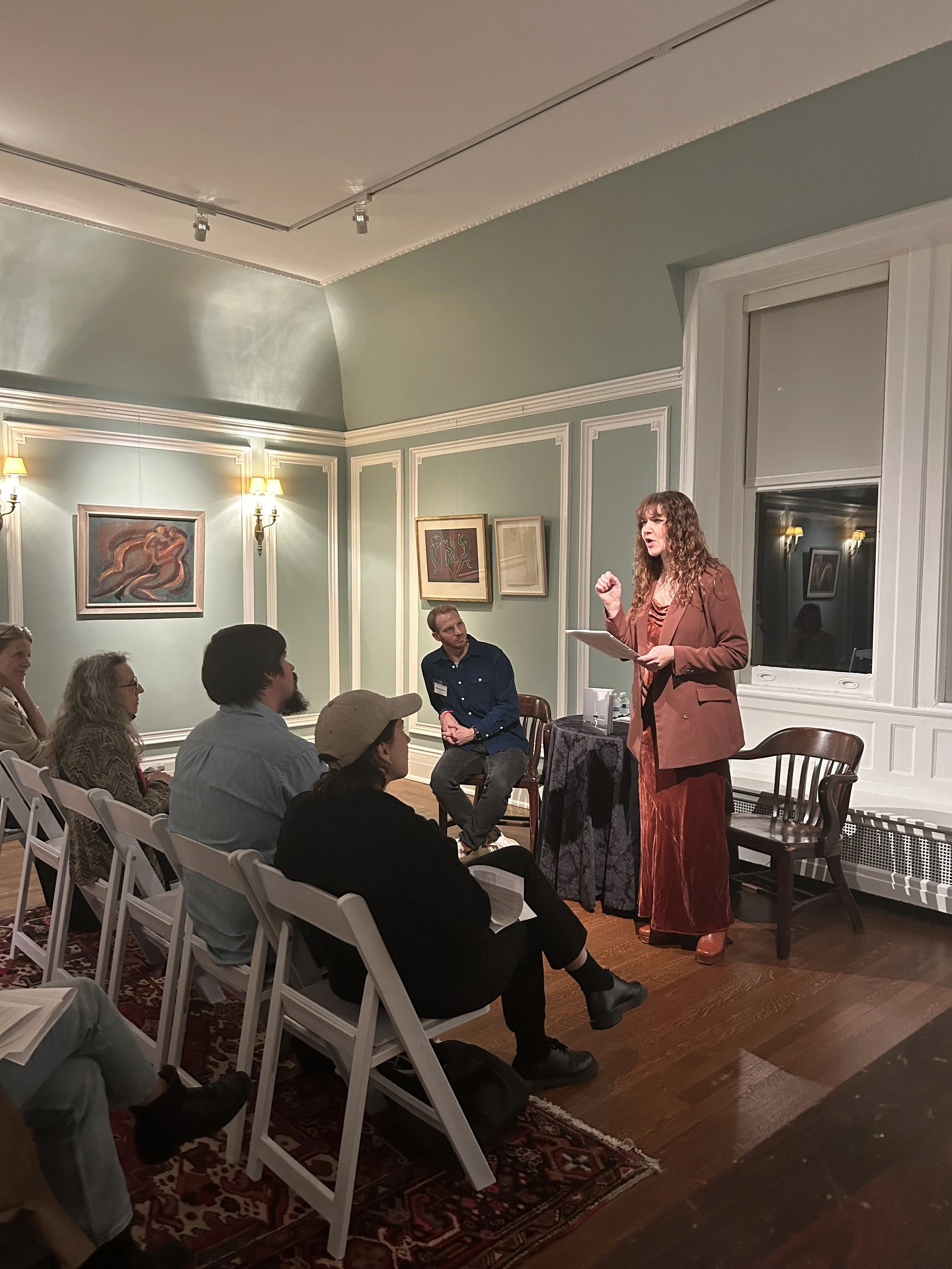Performing an English translation passage of Romain Buffat's new novel, "Grande-Fin" as part of a collective of authors, translators, and performers from seven E.U. countries in NYC.